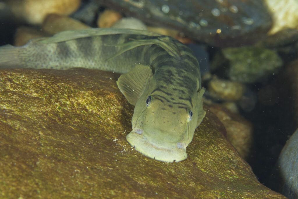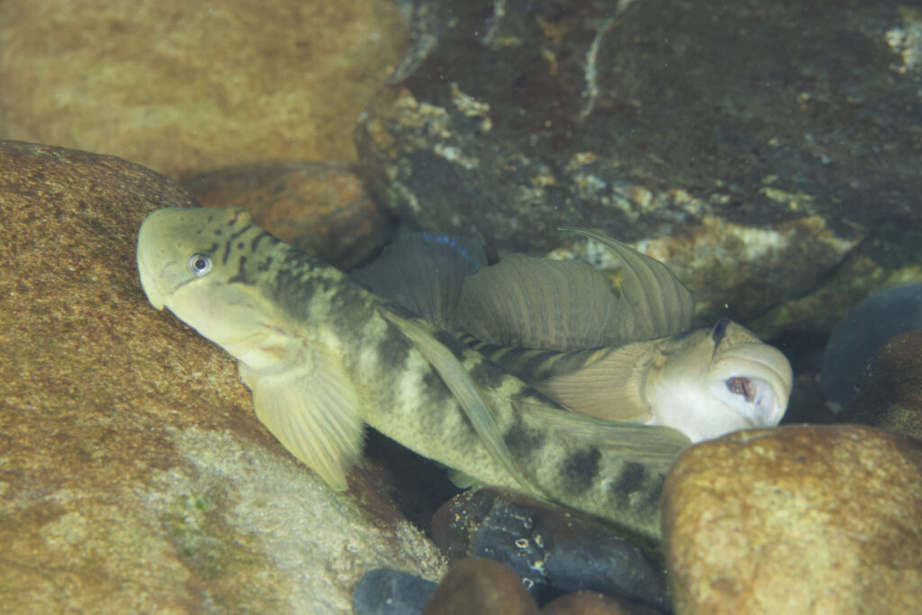 ハゼの仲間としては珍しい植物食で岩の付着藻類を食べる。