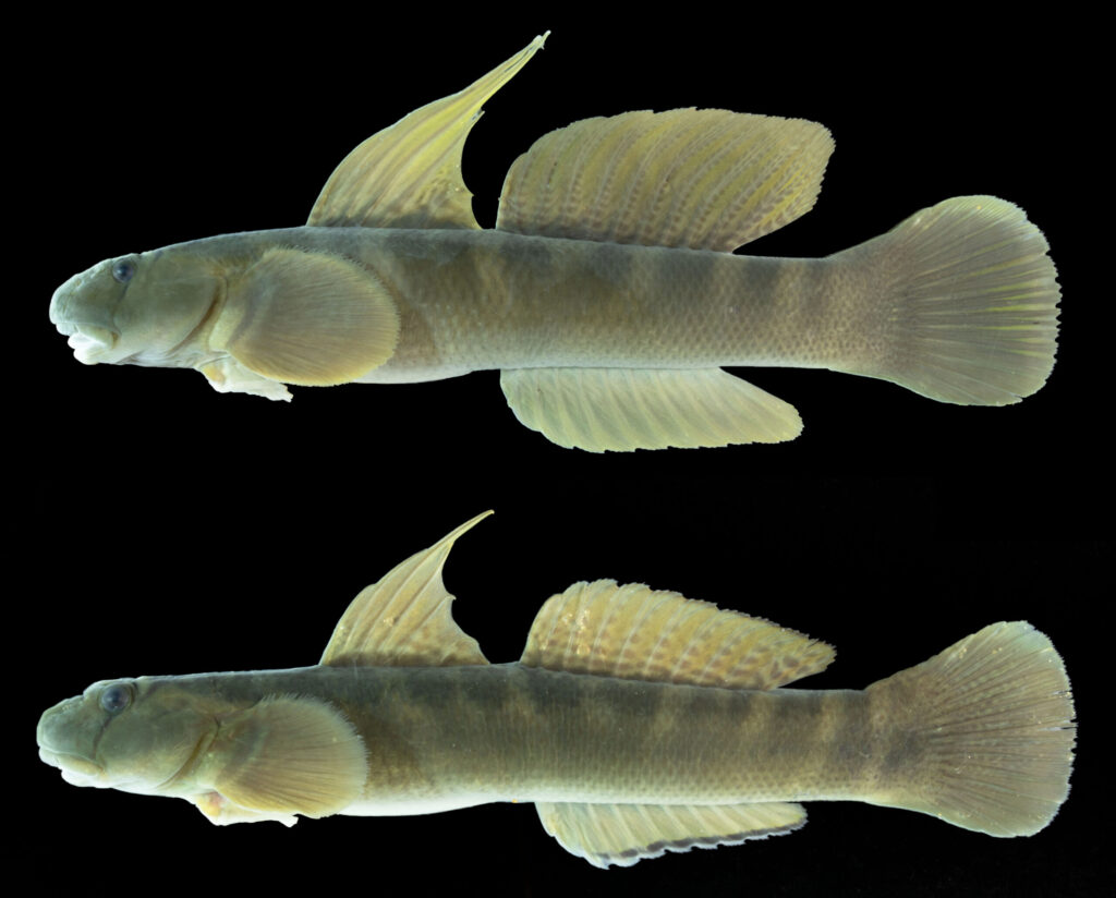体色は茶褐色で体側に黒褐色の横帯がある。